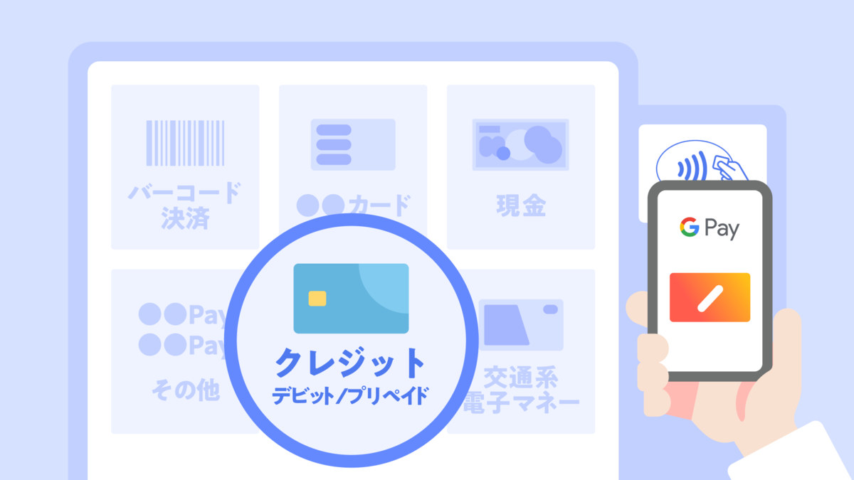 「クレジット/デビット/プリペイド」を選んで、決済端末にスマートフォンをかざすだけでお支払いできます。